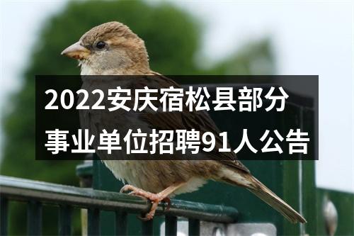 2022年宿松县部分事业单位公开招聘人员91名。具体招聘岗位、人数、资格条件等见《2022年宿松县部分事业单位招聘人员岗位表》(附件1)。本公告将在宿松县政府网(http://www.susong.gov.cn)、宿松县人社局信息公开网(http://www.susong.gov.cn/public/column/2000003661?type=4&action=list)、宿松县人事考试培训网(http://www.ahsspta.com/)发布;此后有关招聘信息将陆续在宿松县人事考试培训网发布。