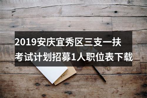 点击查看:>>>2019安庆市宜秀区三支一扶考试计划招募1人职位表下载